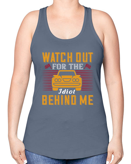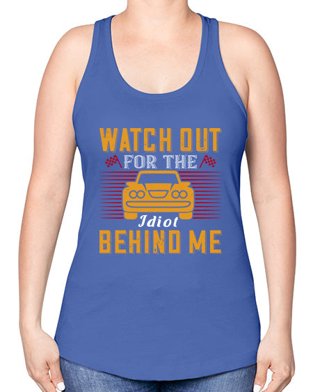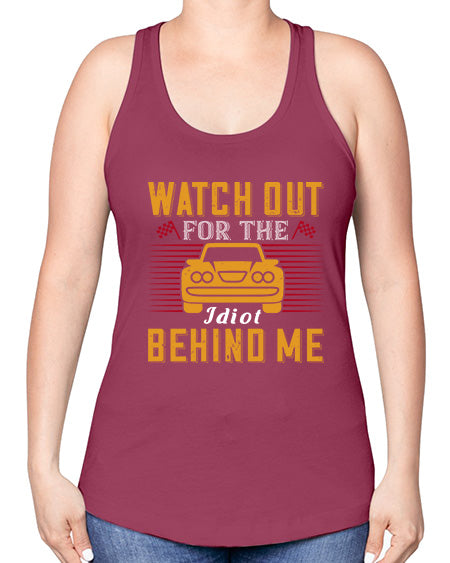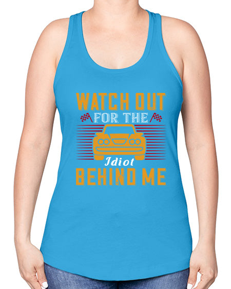 Watch out for the idiot behind me 81# - car -Racerback Tank