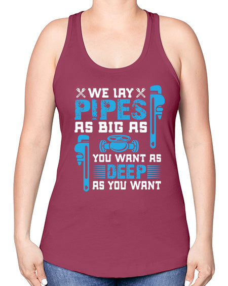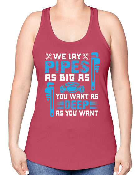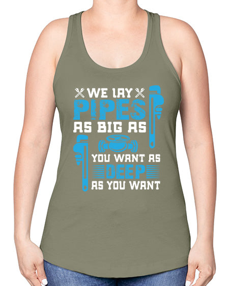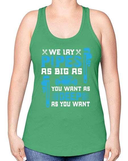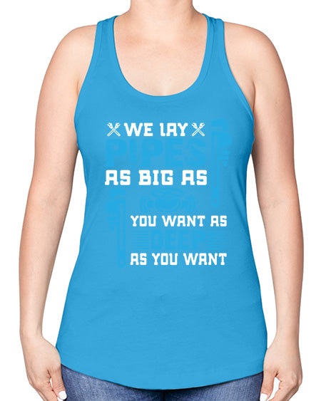 We lay pipes as big as you want as deep as you want1607#- plumber -Racerback Tank