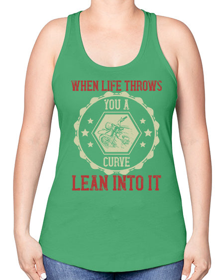 When life throws you a curve lean into it 78#- motorcycle -Racerback Tank