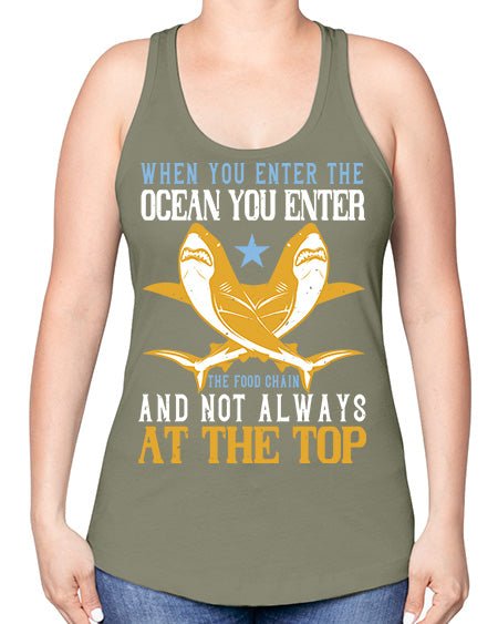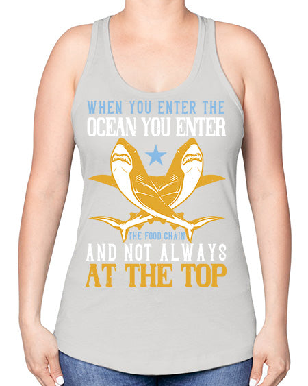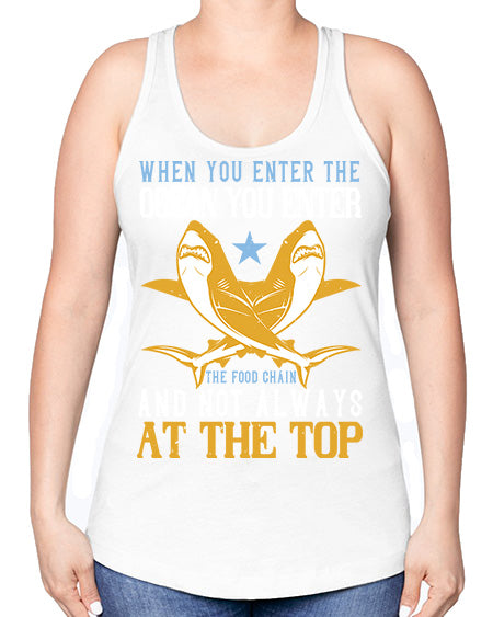 When you enter the ocean you enter the food chain and not always at the top Style 2#- shark-fish -Racerback Tank