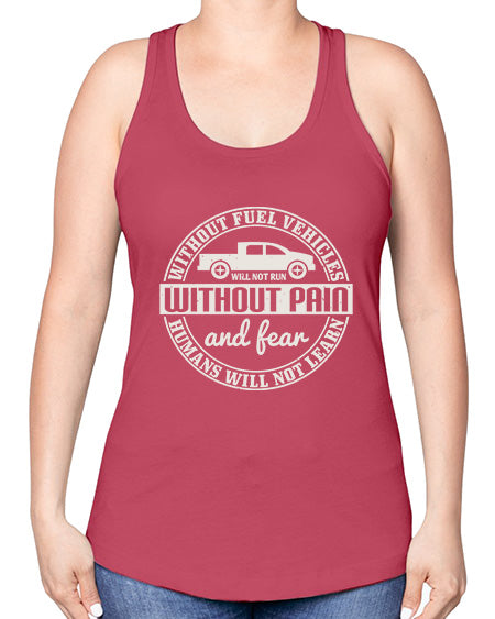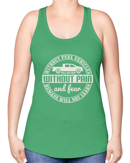 without fuel vehicles will not run without pain and fear humans will not learn 22# - car general -Racerback Tank