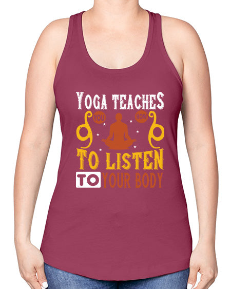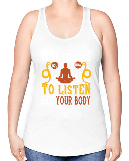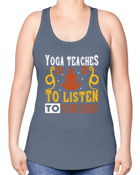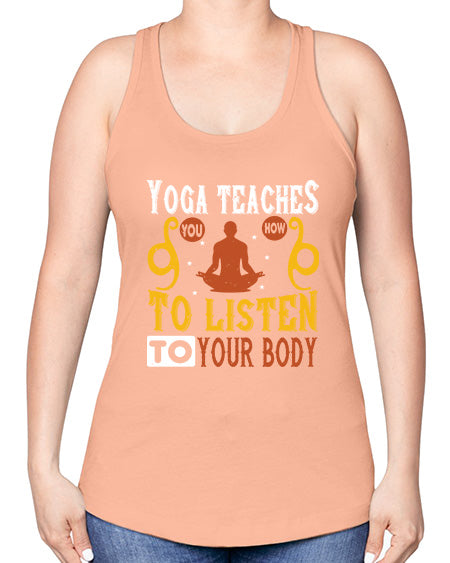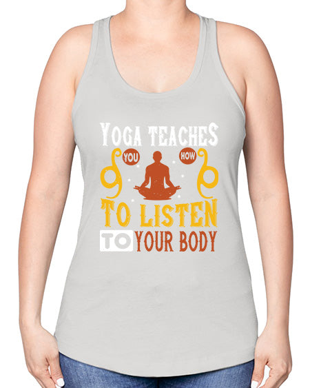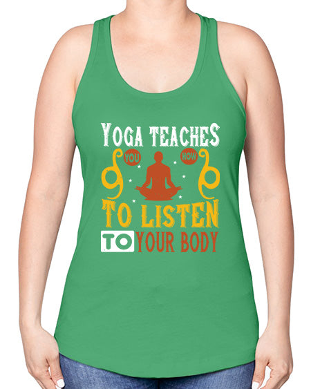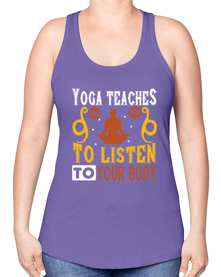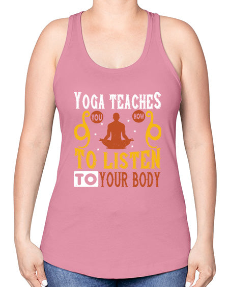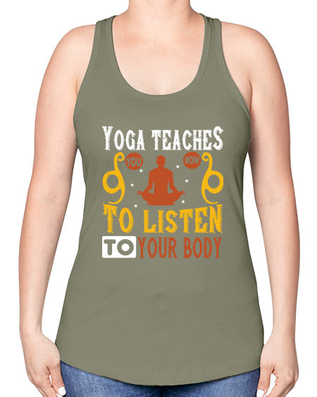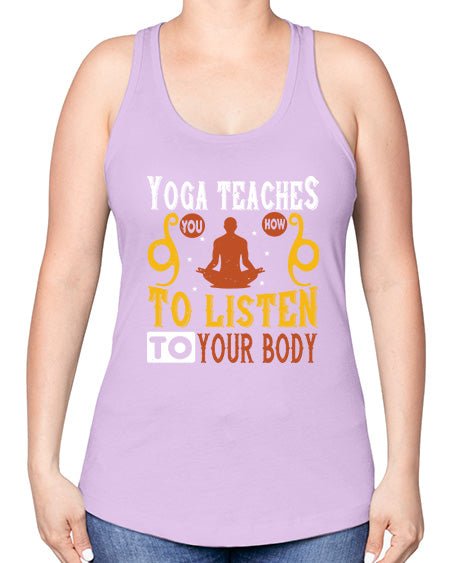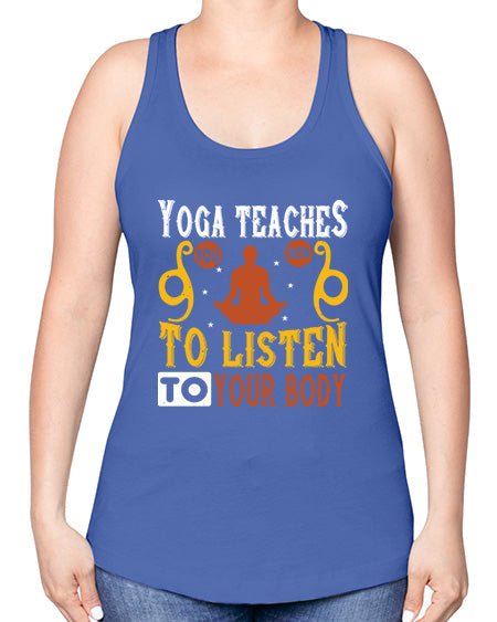 yoga teaches you how to listen to your body 645#- yoga -Racerback Tank